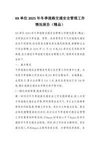 XX单位2025年冬季道路交通安全管理工作情况报告(精品)