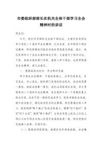 市委组织部部长在机关全体干部学习***精神时的讲话