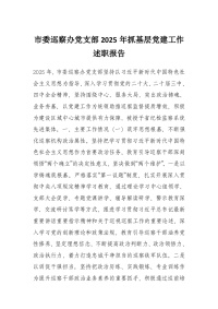 市委巡察办党支部2025年抓基层党建工作述职报告