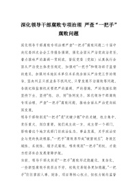 深化领导干部腐败专项治理 严查“一把手”腐败问题