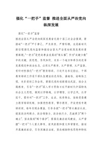 强化“一把手”监督 推进全面从严治党向纵深发展