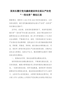 某局长履行党风廉政建设和全面从严治党“一岗双责”情况汇报