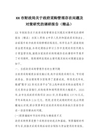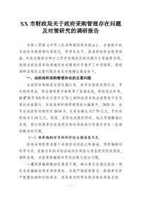 XX市财政局关于***采购管理存在问题及对策研究的